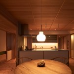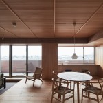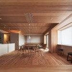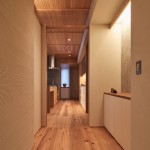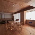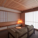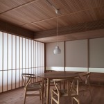 東京都大田区、下町の高級住宅街に建つ低層マンション最上階のリノベーション。和のイメージを持たれていたクライアントに対して単純な和ではなく、北欧と和の調和をうまく表現できないかと試みた。玄関まで一枚で繋がるリビング天井にはヒノキ小幅板を柾目使いし、大きなピッチの押縁で見切ることでリズムを持たせつつ空間の質を高める工夫をしている。
