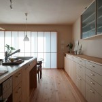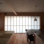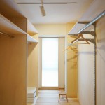 親世帯と子世帯の間は可動家具で分け将来的な可変性を確保し、廊下からリビングを貫く引戸で自由な出入りを確保、それぞれの世帯のクローゼットを重ねて挟むことで世帯間のプライバシーを保っている。