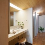 若夫婦が両親と暮らす二世帯住宅という要望にあたり、玄関や水回りなどの共有部分をコアとしてまとめることにし、洗面は廊下に設けた。窓に面する空間を居室として割り当て、それぞれの世帯の寝室を兼ねた居間スペースを設けることとした。