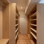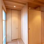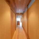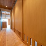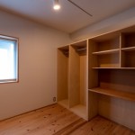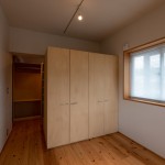 北側は廊下と4枚の引戸で仕切られた大きな一室空間を設け、可動家具で仕切ることで寝室、ウォークイン、2つの子供室をフレキシブルに取れるように計画。廊下との引戸は上部にランマ、下部に通風の無双を設えた機能建具として採光や通風を確保できるようにしている。