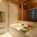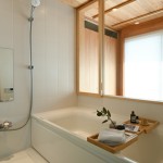 浴室はハーフユニットバスとして東の掃き出し窓にサンルームを挟み設置、入浴しながら都会の夜景を楽しめる。洗面も東の窓近傍に配することで朝日を浴びつつ使える気持ち良いスペースとした。