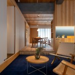 浦和の家、武蔵野の家を施工してくれた工務店、TOIVO(旧サンビック)の事務所兼モデルハウスとして設計。築50年弱の住居兼テナントをスケルトン状態まで解体、壁や天井の断熱改修、断熱サッシへの交換や遮音性能を高める二重床などを用いて住居としての性能を高めつつ、エアコン一台による全室冷暖房(東京大学 前研究室/東京都市大学 加用研究室協力)などを設置している。