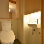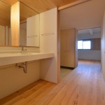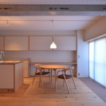 万博公園の家と同時期、高速道路挟んで見える位置で手掛けたマンションリノベーション。初めての車いす対応プランということで、玄関や廊下巾、トイレや脱衣室の広さなどを住まい手と相談しつつ配置した。