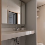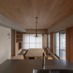 目黒川沿いに建つ、大きなルーフバルコニーのある正方形角部屋物件。クライアントの要望は西面の窓と天井から来る夏の暑さ対策と、ライフスタイルと家族構成に合わない間取りの再構築というもの。築古年の物件特有の配管経路の難しさや高さの問題をどうクリアするかが焦点となった。