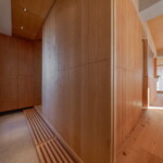 素材には地元で産出される白河石などを使い、エアコン一台で家全体の冷暖房をまかなう全室空調も設置、壁面には木繊維を吹き込む断熱強化、内窓の設置で安定した温熱環境をもつ終の棲家として、空間の快適性を体感してもらえるモデルルームとなるよう計画した。
