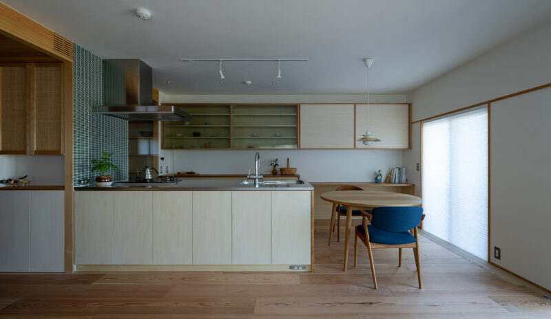 風工学を研究する大学教授の自邸マンションリノベーション。シミュレーションを元に壁掛けエアコン1台による床下冷暖房を検証する実験住宅となっている。第1種換気による全熱交換換気と6面断熱も行った。